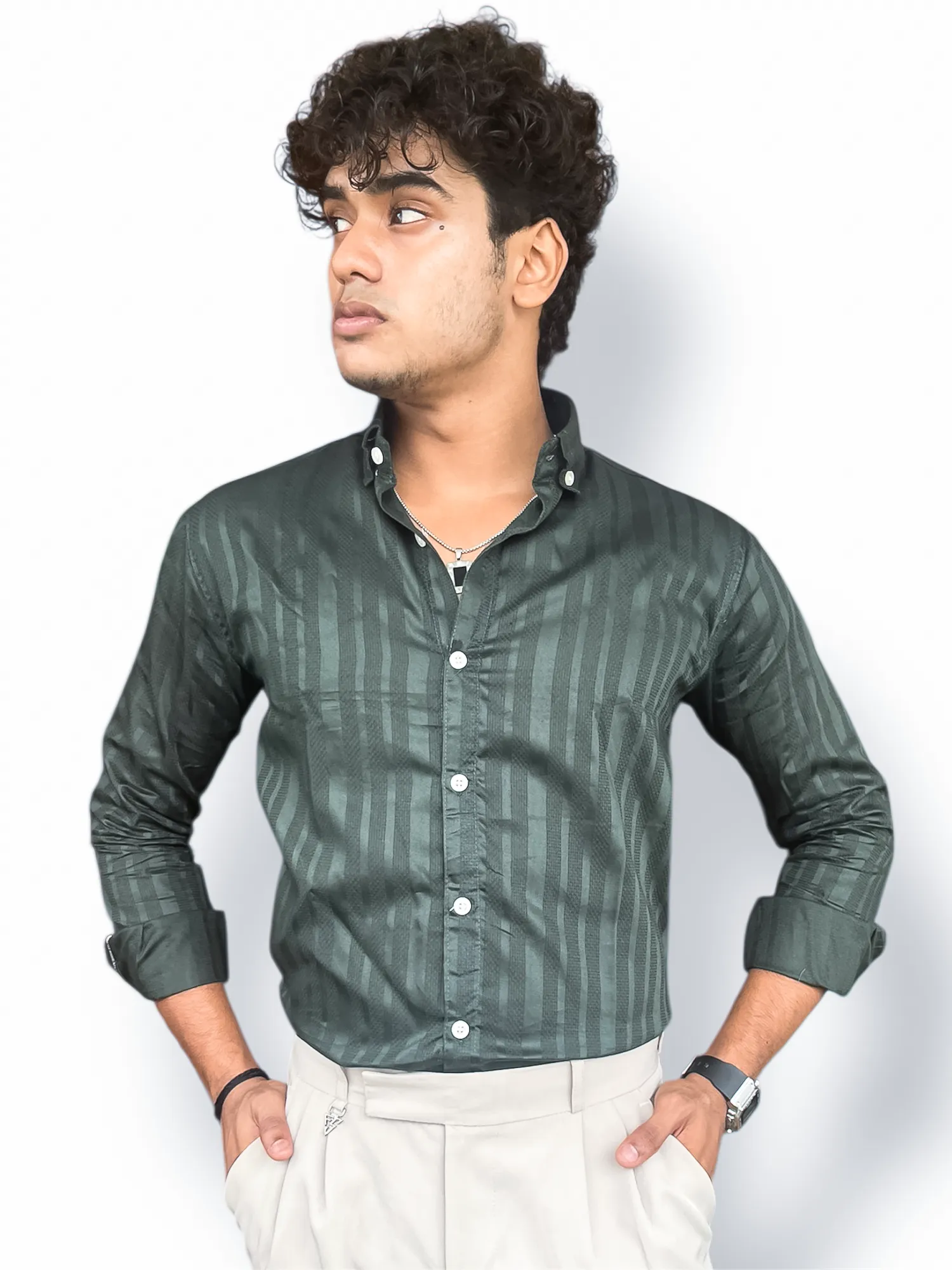 Premium Jacquard Full-Hand Shirt – Emerald Green