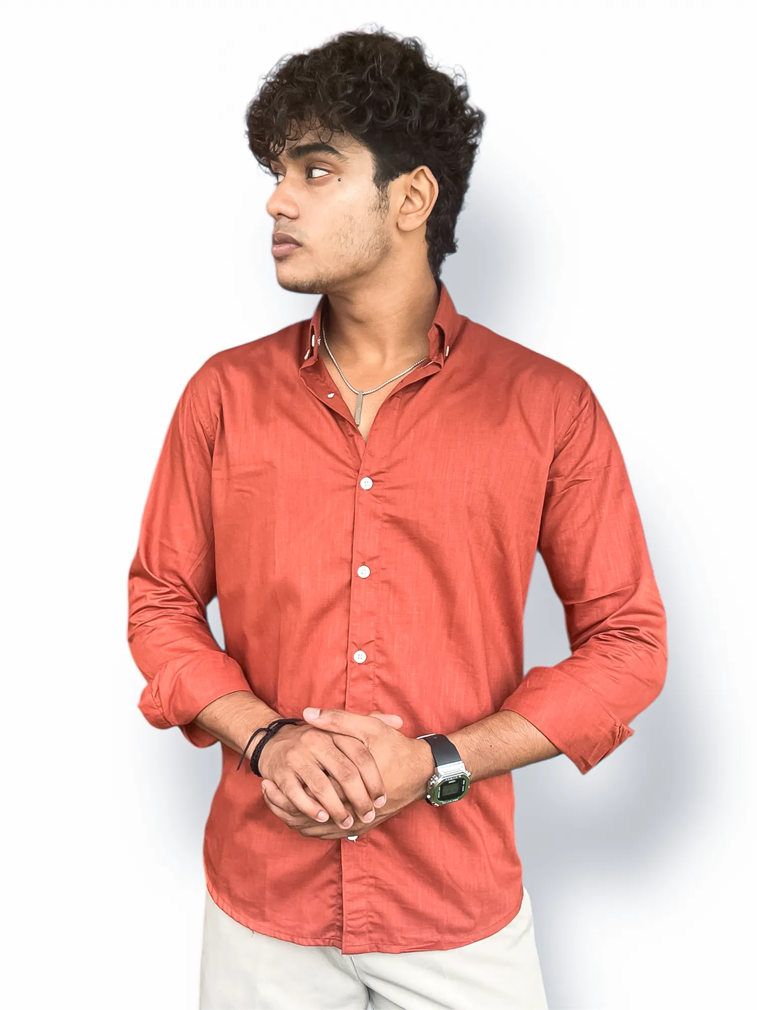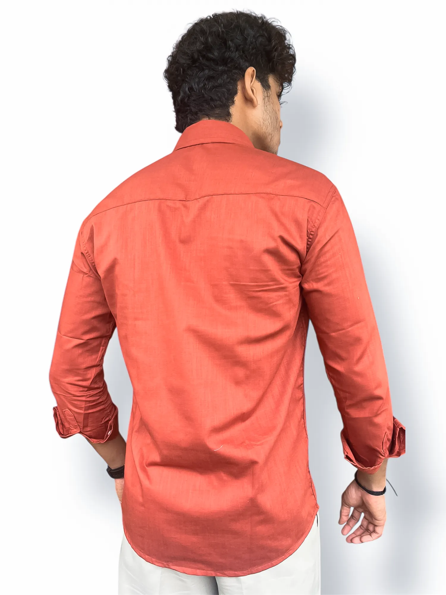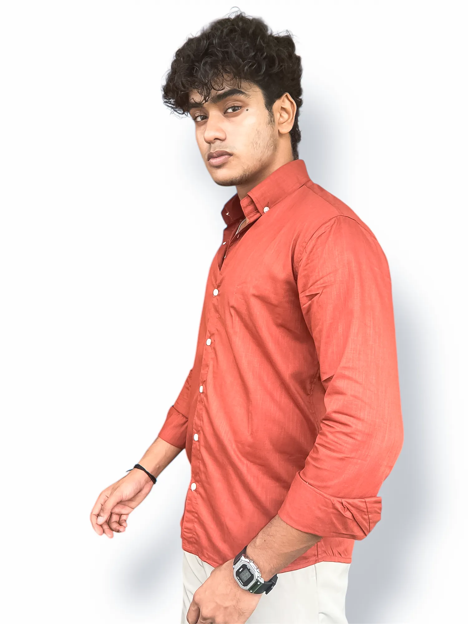 Premium Linen Full-Hand Shirt for Men – Rust (Slim Fit)