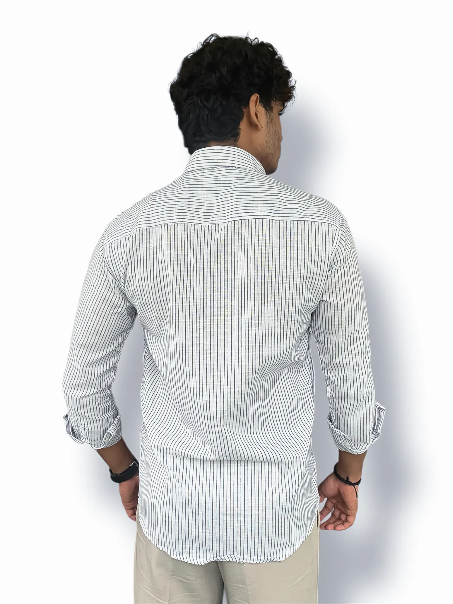 Linen Full-Hand Shirt for Men – White & Blue Stripes